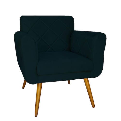 Poltrona Decorativa Sala Recepção Em Tressê Isabella Suede Azul Marinho - LM DECOR