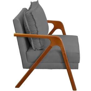 Poltrona Decorativa Shine Pé Castanho - Cinza Suede