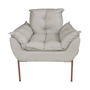 Poltrona Decorativa Suede Bege Base Metálica Cobre - Vallisa Decor