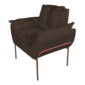 Poltrona Decorativa Suede Marrom Base Cobre - Vallisa Decor