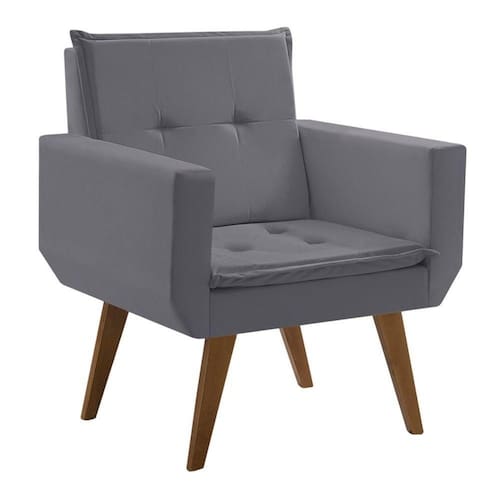 é seguramente sustentado pelos pés em madeira, outra evidencia desse móvel são os pespontos com linha de Nylon que ressalta o visual moderno da Poltrona.