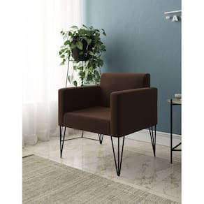 IMAGENS MERAMENTE ILUSTRATIVAS REALIZADO EDIÇÃO, PODENDO HAVER UMA PEQUENA VARIAÇÃO DE COR DEPENDENDO DE CADA TELA OU MONITOR.Poltrona Decorativa Turim PÃs Hairpin Preto Tecido Suede Marrom