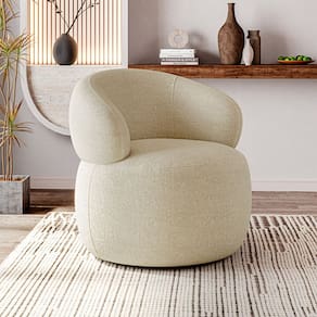 Poltrona Design Orgânico Moderno e Sofisticado Eloah Base Giratória Bouclé Italiano Bege
