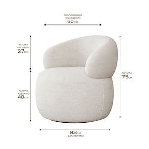 Poltrona Design Orgânico Moderno e Sofisticado Eloah Base Giratória Bouclé Italiano Off White - Bege