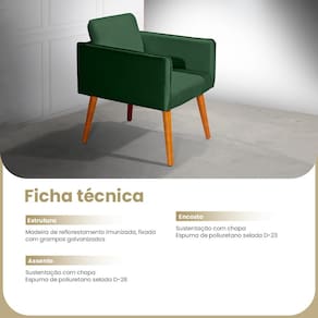 ESPECIFICAÇÃO TÉCNICA: -Material da Estrutura: Madeira de Reflorestamento; -Fixação da Estrutura: Grampos Galvanizados; -Material do Enchimento do Assento: Espuma Poliuretano D28 Soft; -Material do Enchimento do Encosto: Espuma D20; -Material do Revestimento: Tecido Suede; -Almofadas dos Assento: Fixas; -Almofadas do Encosto: Fixas; -Tipo de pé: Fixo; -Material dos pés: Madeira; -Quantidade Lugares: 1 Lugar; -Peso Total Suportado: 100kg Por Pessoa; -Garantia 3 Meses; -Necessita de Montagem? Sim; -Dimensões do Produto (LarguraXProfundidadeXAltura): 60x63x78cm; -Conteúdo da Embalagem:1 Poltrona;