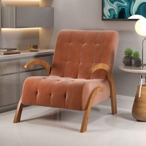 A Poltrona Garden é uma ótima opção para completar a sala de estar, sala de espera ou quarto. Sua estrutura mista em MDP 25mm e madeira de eucalipto de reflorestamento garante mais resistência e durabilidade. O conforto fica por conta do revestimento em espuma no assento e encosto combinado com o uso de percintas no acento, além do acabamento externo em tecido. Além disso, conta com um design diferenciado, trazendo sofisticação e requinte ao ambiente. Acompanha Almofadas extras: Não Acompanha Puff: Não Almofada do assento: Fixa Almofada do encosto: Fixa Altura do assento até o chão: 48,5 cm Altura do Encosto: 56 cm Ambiente Principal: Sala de Estar Complexidade da Montagem: Baixa: pode ser montado por uma pessoa sozinha Cor: Terracota Cor do Produto: Terracota Design Assinado: Não Enchimento do Assento: Espuma D-23 Enchimento do Braço: Não Possui Enchimento do Encosto: Espuma D-20 Encosto para a Cabeça: Não Estampado: Não Extensível: Não Firmeza do Assento: Firme Itens Inclusos: 1 Poltrona, Kit Ferragens e Manual de Montagem Linha ou Coleção: Viero Manual de Montagem e Instalação: https://product-hub-prd.madeiramadeira.com.br/870808/documents/72d742ea-bd4a-472f-b46c-33dcc4fd47d1manualpoltrona.pdf Material do Braço: MDF/MDP Material dos Pés: MDF Modelo de Poltrona: Fixo Necessita Montagem: Sim Origem do Produto: Nacional Peso: 17 kg Possui Percintas Elásticas: Sim Possui Pés: 04 Possui Rodízio: Não Recomendações de Uso, Manutenção e Limpeza: Limpar com pano umedecido com água Sistema de Montagem: Parafusos Suporta Até (kg): 100 kg Tecido Predominante: Veludo Tipo de Assento: Fixo Tipo de Encosto: Fixo Tipo de Espuma do Assento: Espuma Convencional Tipo de Poltrona: Do Papai Ean: 7909903427521