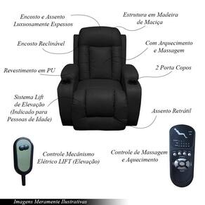 Poltrona Do Papai Reclinável Com Massagem E Elevação Miami Couro Sintético Preto Encantum
