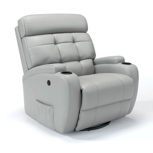 Poltrona do Papai Reclinável Elétrica com base Giratória e Balanço em Couro Bovino Damie