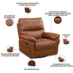 SupplierSimpleName: Poltrona do Papai Reclinável Elétrica e Giratória Oliver D06 Couríssimo Camel - Lyam Decor