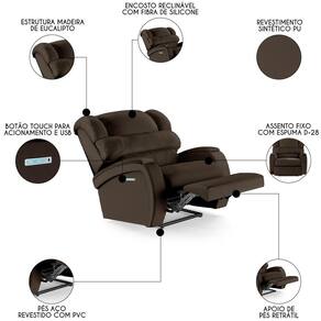 Hora de deixar a sua Sala De Estar mais moderna e transformar em um espaço de entretenimento de última geração com a Poltrona do Papai Reclinável Kalie Power Touch FH9 PU Marrom, da Mpozenato!