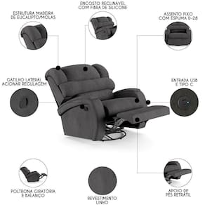 Que tal transformar a sua Sala De Estar em um espaço de entretenimento comparável a uma sala de cinema privada? A Poltrona do Papai Reclinável Kalie Glider Giratória USB FH9 Linho Grafite, da Mpozenato é a adição perfeita para alcançar esse sonho.