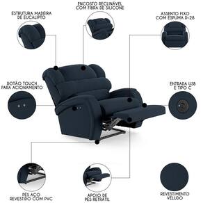 Conheça a Poltrona do Papai Reclinável Kalie Power Touch USB FH9 Veludo Azul, da Mpozenato. Ideal para transformar a sua Sala De Estar em um espaço de entretenimento de última geração!