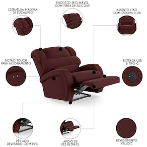 Conheça a Poltrona do Papai Reclinável Kalie Power Touch USB FH9 Veludo Vinho, da Mpozenato. Ideal para transformar a sua Sala De Estar em um espaço de entretenimento de última geração!