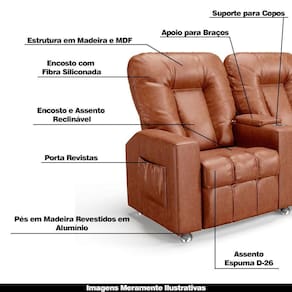 Poltrona Do Papai Reclinável Manual 2 Lugares Sala De Cinema Romeo F05 Facto Camel - Lyam Decor