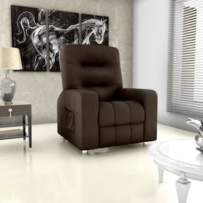 Estrutura: Eucalipto e Pinus de Reflorestamento Acabamento: Anticupim Apoio para os pés: Sim. Enconto Desmontável: Fixo, Reclinável com enchimento em Fibra Siliconizada. Assento: Fixo Revestimento: Tecido Suede Mecanismo: 02 Estágios e 03 Posições Posições: Sentado, Leitura e Descanso Densidade do Assento: Espuma D-26 Densidade dos Braços: Espuma D-20 Ambiente: Sala Peso Suportado: 100 kg