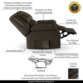 Diferenciais: Apoio de pés retrátil, Acompanha controle para acionamento e bolso lateral para revistas e livros