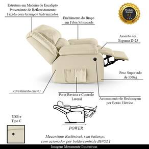 Diferenciais: Apoio de pés retrátil, Acompanha controle para acionamento e bolso lateral para revistas e livros