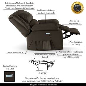 Que tal criar seu próprio home cinema? Aqui, vamos mostrar como você pode montar o seu! Com o local adequado, alguns itens decorativos e uma poltrona ideal, você garantirá um espaço confortável e imersivo. O primeiro passo é investir em equipamentos de alta qualidade! Olha só que lindeza a nossa Poltrona do Papai Reclinável Melim. Ela foi projetada para proporcionar máximo conforto e funcionalidade, esta poltrona é a escolha ideal para quem busca relaxamento, estilo e uma experiência de cinema privada. A facilidade de ajuste com o botão elétrico permite que você encontre a posição perfeita com o toque de um botão com LED, pensado para proporcionar uma experiência imersiva sem igual. Com capacidade para suportar até 130 kg, oferecendo segurança e estabilidade ao consumidor. O revestimento em Sintético PU Marrom oferece um toque de sofisticação e conforto, enquanto a estrutura em Madeira de Lei Eucalipto com Controle de Umidade, Proveniente de Reflorestamento, Fixa com Grampos Galvanizados garante resistência e durabilidade. O assento foi preenchido com fibra siliconada com espuma D-28, respectivamente, para um conforto adicional. O assento (fixo) e o apoio de Pés Retrátil proporcionam um apoio perfeito para suas pernas, aumentando o conforto. O encosto reclinável, possibilita ajustá- lo para a posição ideal de relaxamento. Já os pés fixos foram feitos em aço revestido com plástico, adicionando um toque de elegância ao produto. E tem mais!! Ela contém Bolso lateral para revistas e controle nas braças perfeito para armazenar livros e outros objetos, mantendo tudo ao seu alcance. Com um design moderno e prático, esta poltrona se tornará o destaque da sua sala de estar. Afinal, sua casa merece a Poltrona do Papai Reclinável Melim Elétrica LED. Adquira a sua agora mesmo e transforme sua sala de estar em um verdadeiro cinema!