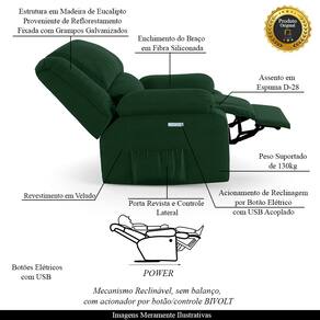 Que tal criar seu próprio home cinema? Aqui, vamos mostrar como você pode montar o seu! Com o local adequado, alguns itens decorativos e uma poltrona ideal, você garantirá um espaço confortável e imersivo. O primeiro passo é investir em equipamentos de alta qualidade! Olha só que lindeza a nossa Poltrona do Papai Reclinável Melim. Ela foi projetada para proporcionar máximo conforto e funcionalidade, esta poltrona é a escolha ideal para quem busca relaxamento, estilo e uma experiência de cinema privada. A facilidade de ajuste com o botão elétrico permite que você encontre a posição perfeita com o toque de um botão com LED, pensado para proporcionar uma experiência imersiva sem igual. Com capacidade para suportar até 130 kg, oferecendo segurança e estabilidade ao consumidor. O revestimento em Veludo Verde oferece um toque de sofisticação e conforto, enquanto a estrutura em Madeira de Lei Eucalipto com Controle de Umidade, Proveniente de Reflorestamento, Fixa com Grampos Galvanizados garante resistência e durabilidade. O assento foi preenchido com fibra siliconada com espuma D-28, respectivamente, para um conforto adicional. O assento (fixo) e o apoio de Pés Retrátil proporcionam um apoio perfeito para suas pernas, aumentando o conforto. O encosto reclinável, possibilita ajustá- lo para a posição ideal de relaxamento. Já os pés fixos foram feitos em aço revestido com plástico, adicionando um toque de elegância ao produto. E tem mais!! Ela contém Bolso lateral para revistas e controle nas braças perfeito para armazenar livros e outros objetos, mantendo tudo ao seu alcance. Com um design moderno e prático, esta poltrona se tornará o destaque da sua sala de estar. Afinal, sua casa merece a Poltrona do Papai Reclinável Melim Elétrica LED. Adquira a sua agora mesmo e transforme sua sala de estar em um verdadeiro cinema!