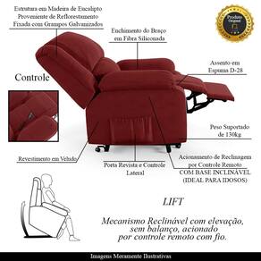 Diferenciais: Apoio de pés retrátil, acompanha controle para acionamento, elevação Lift, e bolso lateral para revistas e livros