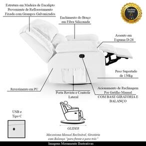 Mecanismo: Glider Manual Giratória e Balanço com USB Bivolt