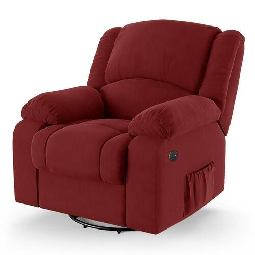 Poltrona Do Papai Reclinável Melim Glider Giratória Usb Veludo Fh1 - D'rossi Cor Vermelho