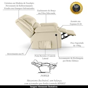 Poltrona do Papai Reclinável Melim Power Elétrica PU Bege FH1 - D`Rossi