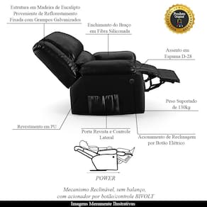 Poltrona do Papai Reclinável Melim Power Elétrica PU Brilho FH1 - D`Rossi - Preto