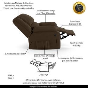 Poltrona do Papai Reclinável Melim Power Elétrica USB Veludo Marrom FH1 - D`Rossi