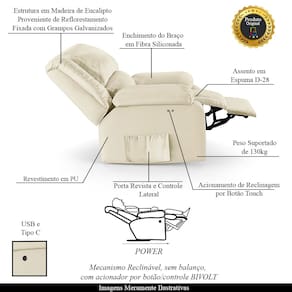 Que tal criar seu próprio home cinema? Aqui, vamos mostrar como você pode montar o seu! Com o local adequado, alguns itens decorativos e uma poltrona ideal, você garantirá um espaço confortável e imersivo. O primeiro passo é investir em equipamentos de alta qualidade! Olha só que lindeza a nossa Poltrona do Papai Reclinável Melim. Ela foi projetada para proporcionar máximo conforto e funcionalidade, esta poltrona é a escolha ideal para quem busca relaxamento, estilo e uma experiência de cinema privada. Com a conveniência do ajuste elétrico por meio de um Power botão touch Bivolt em uma das Braças, é possível encontrar a posição ideal com um simples toque, proporcionando uma experiência imersiva única e sem comparações. Contém também uma saída USB, que permite que você carregue seu celular enquanto relaxa. Ela conta com capacidade para suportar até 130 kg, oferecendo segurança e estabilidade ao consumidor. O revestimento em Sintético PU oferece um toque de sofisticação e conforto, enquanto a estrutura em Madeira de Lei Eucalipto com Controle de Umidade, Proveniente de Reflorestamento, Fixa com Grampos Galvanizados garante resistência e durabilidade. O braço Braço foi preenchido em Fibra Siliconada e assento/encosto foi preenchido com espuma D-28, respectivamente, para um conforto adicional. O assento (fixo) e o apoio de Pés Retrátil proporcionam um apoio perfeito para suas pernas, aumentando o conforto. O encosto reclinável, possibilita ajustá- lo para a posição ideal de relaxamento. Já os pés fixos foram feitos em aço revestido com plástico, adicionando um toque de elegância ao produto. E tem mais!! Ela contém Bolso lateral para revistas e controle nas braças perfeito para armazenar livros e outros objetos, mantendo tudo ao seu alcance. Com um design moderno e prático, esta poltrona se tornará o destaque da sua sala de estar. Afinal, sua casa merece a Poltrona do Poltrona do Papai Reclinável Melim Power Touch USB. Adquira a sua agora mesmo e transforme sua sala de estar em um verdadeiro cinema!