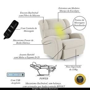 Diferenciais: Poltrona Elétrica com Massagem, Apoio de pés retrátil, botão LED para acionamento