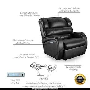 Que tal criar seu próprio home cinema? Aqui, vamos mostrar como você pode montar o seu! Com o local adequado, alguns itens decorativos e uma poltrona ideal, você garantirá um espaço confortável e imersivo. O primeiro passo é investir em equipamentos de alta qualidade! Olha só que lindeza a nossa Poltrona Reclinável do Papai Napoli. Ela foi projetada para proporcionar máximo conforto e funcionalidade, esta poltrona é a escolha ideal para quem busca relaxamento, estilo e uma experiência de cinema privada. Com capacidade para suportar até 110 kg oferecendo segurança e estabilidade ao consumidor. O revestimento em PU Brilho oferece um toque de sofisticação e conforto, enquanto a estrutura em Madeira Maciça de Eucalipto garante resistência e durabilidade. O sistema de abertura fácil permite ajustar a poltrona sem esforço: basta acionar o mecanismo power com controle de acionamento bivolt, onde possibilita que você encontre a posição perfeita com um simples toque de um botão LED. E tem mais, ela ainda conta com entrada USB e tipo C ideal para carregar seus eletrônicos enquanto descansa. O encosto e o assento são sustentados por fibra siliconada e espuma D-28, no assento também possui Molas respectivamente para um conforto adicional. O assento (fixo) e o apoio de Pés Retrátil proporcionam um apoio perfeito para suas pernas, aumentando o conforto. O encosto reclinável, possibilita ajustá- lo para a posição ideal de relaxamento. Já os pés (fixos) foram feitos em Aço Revestido com Plástico, adicionando um toque de elegância ao produto. Com um design moderno e prático, esta poltrona se tornará o destaque da sua sala de estar. Afinal, sua casa merece a Poltrona do Papai Reclinável Napoli Elétrica Botão LED. Adquira a sua agora mesmo e transforme sua sala de estar em um verdadeiro cinema!