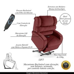 Que tal criar seu próprio home cinema? Aqui, vamos mostrar como você pode montar o seu! Com o local adequado, alguns itens decorativos e uma poltrona ideal, você garantirá um espaço confortável e imersivo. O primeiro passo é investir em equipamentos de alta qualidade! Olha só que lindeza a nossa Poltrona do Papai Reclinável Napoli. Ela foi projetada para proporcionar máximo conforto e funcionalidade, esta poltrona é a escolha ideal para quem busca relaxamento, estilo e uma experiência de cinema privada. E ela ainda conta com Controle Elétrico sem fio Bi Volt, mecanismo LIFT que é uma inovação que permite ajustar a inclinação e elevação da poltrona de forma suave, ideal para quem precisa de conforto e suporte após um longo dia. Sendo ideal para Idosos pois facilita o movimento de sentar e levantar, reduzindo o esforço físico; pessoas com mobilidade reduzida; pessoas com problemas nas articulações coluna/apenas ou para quem busca relaxamento. Ela conta com capacidade para suportar até 110 kg, oferecendo segurança e estabilidade ao consumidor. O revestimento em PU Vermelho oferece um toque de sofisticação e conforto, enquanto a estrutura em madeira de eucalipto proveniente de reflorestamento garante resistência e durabilidade. O assento/ braços foi preenchido com fibra siliconada No assento contém molas e espuma D-28, respectivamente, para um conforto adicional. O assento (fixo) e o apoio de Pés Retrátil proporcionam um apoio perfeito para suas pernas, aumentando o conforto. O encosto reclinável, possibilita ajustá- lo para a posição ideal de relaxamento. Já os pés fixos foram feitos em aço revestido com plástico, adicionando um toque de elegância ao produto. Com um design moderno e prático, esta poltrona se tornará o destaque da sua sala de estar. Afinal, sua casa merece a Poltrona do Papai Reclinável Napoli Elevação Lift Elétrico. Adquira a sua agora mesmo e transforme sua sala de estar em um verdadeiro cinema!