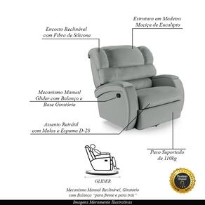 Que tal criar seu próprio home cinema? Aqui, vamos mostrar como você pode montar o seu! Com o local adequado, alguns itens decorativos e uma poltrona ideal, você garantirá um espaço confortável e imersivo. O primeiro passo é investir em equipamentos de alta qualidade! Olha só que lindeza a nossa Poltrona do Papai Reclinável Napoli. Ela foi projetada para proporcionar máximo conforto e funcionalidade, esta poltrona é a escolha ideal para quem busca relaxamento, estilo e uma experiência de cinema privada. A poltrona com sistema glider, encosto reclinável e apoio para os pés manual oferece um relaxamento total, sendo giratória e com balanço suave. Este ajuste é feito manualmente, utilizando um gatilho localizado na lateral da poltrona. Ao puxar ou pressionar esse gatilho, o usuário pode reclinar o encosto ou levantar o apoio para os pés, ajustando a poltrona à posição desejada. Com capacidade para suportar até 110 kg, oferecendo segurança e estabilidade ao consumidor. O revestimento em PU Cinza oferece um toque de sofisticação e conforto, enquanto a estrutura em Madeira Maciça de Eucalipto. O assento foi preenchido com fibra siliconada e espuma D-28, respectivamente, para um conforto adicional. O assento (fixo) e o apoio de Pés Retrátil proporcionam um apoio perfeito para suas pernas, aumentando o conforto. O encosto reclinável, possibilita ajustá- lo para a posição ideal de relaxamento. Já os pés giratórios foram feitos em aço revestido com plástico, adicionando um toque de elegância ao produto. Com um design moderno e prático, esta poltrona se tornará o destaque da sua sala de estar. Afinal, sua casa merece a Poltrona do Papai Reclinável Napoli Glider Giratória. Adquira a sua agora mesmo e transforme sua sala de estar em um verdadeiro cinema!