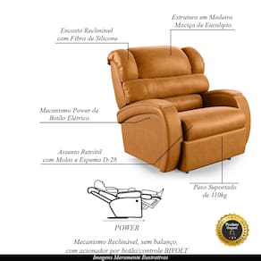 Que tal criar seu próprio home cinema? Aqui, vamos mostrar como você pode montar o seu! Com o local adequado, alguns itens decorativos e uma poltrona ideal, você garantirá um espaço confortável e imersivo. O primeiro passo é investir em equipamentos de alta qualidade! Olha só que lindeza a nossa Poltrona do Papai Reclinável Napoli. Ela foi projetada para proporcionar máximo conforto e funcionalidade, esta poltrona é a escolha ideal para quem busca relaxamento, estilo e uma experiência de cinema privada. A facilidade de ajuste com o botão elétrico com LED permite que você encontre a posição perfeita com o toque suave de um botão touch, pensado para proporcionar uma experiência imersiva sem igual. Ela conta com capacidade para suportar até 110 kg, oferecendo segurança e estabilidade ao consumidor. O revestimento em PU Whisky oferece um toque de sofisticação e conforto, enquanto a estrutura em Composta por Madeira Maciça de Eucalipto garante resistência e durabilidade. O encosto foi preenchido com fibra siliconada. O assento foi preenchido com molas e espuma D-28, respectivamente, para um conforto adicional. O assento e o apoio de Pés Retrátil proporcionam um apoio perfeito para suas pernas, aumentando o conforto. Já os pés fixos foram feitos em aço revestido com plástico, adicionando um toque de elegância ao produto. Com um design moderno e prático, esta poltrona se tornará o destaque da sua sala de estar. Afinal, sua casa merece a Poltrona do Papai Reclinável Napoli Power Touch. Adquira a sua agora mesmo e transforme sua sala de estar em um verdadeiro cinema!
