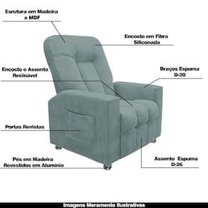 Diferenciais: Apoio de pés retrátil, bolso lateral para revistas e livros