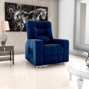 Tipo de produto: Poltrona | Modelo: Poltrona Reclinável para Sala de cinema,clinica estetica,Gamer,conforto | É com chaise: Não | É reclinável: Sim | Marca: Matrix | Linha: Azera | É de canto: Não | É sofá-cama: Não | Quantidade de lugares: 1 | Estilo: Moderno | Fabricante: Matrix | Altura Montado (cm): 77 | Largura Montado (cm): 84 | Profundidade Montado (cm): 84 | Peso Montado (Kg): 41 | Dimensões do Produto Montado (cm) (A x L x C): 77x84x84 | Quantidade de posições de reclinado: 2 | Inclui cama auxiliar: Não | Inclui colchão: Não | É em forma de U: Não | É modular: Não | Móvel Dobrável: Não | Requer montagem: Não | Inclui manual de montagem: Não | Com pés desmontáveis: Sim | País de Origem: | Produto personalizado: Não | Tipo de Garantia: Fabricante | Duração da Garantia: 3 mêses | Coleção de Antiguidade: Não | Desenho do tecido: Liso | Condição do item: | Código universal de produto: 7898632206272 | Cor: SINTETICO PRETO | Tonalidade: Preto | Quantidade de caixas de embalagem: 1 | Altura Embalagem (cm): 78 | Largura Embalagem (cm): 88 | Profundidade Embalagem (cm): 89 | Peso Embalagem (Kg): 41 | Peso máximo suportado: 120 | Material dos pés: 4 PÉS DE MADEIRA REVESTIDOS EM ALUMÍNIO. | Material do estofamento: Sintético | Material de enchimento do encosto: Espuma | Materiais da estrutura: Madeira | Densidade da espuma do assento: D23 | Cômodo Indicado: Salas e Quartos | Mecanismo de Abertura: COM AS MÃOS NAS BRAÇAS, FLEXIONE O CORPO PARA TRÁS E MÃOS PARA FRENTE. | Quantidade de peças: 1 | É sofá na caixa: Não | Com tecido removível: Não | Possui Braças: Sim | Cor: VELUDO AZUL