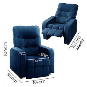 Poltrona Do Papai Reclinavel Para Sala Maldivas Veludo Azul Azul