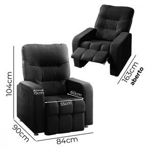 Medidas da Poltrona -Fechada-: Altura: 104 cm Altura do Encosto: 68 cm Largura Total: 83 cm Largura do Assento: 51 cm Profundidade: 83 cm Profundidade do Assento: 52 cm Altura do Chão até o Assento: 35 cm Largura de cada Braço: 14 cm Peso: 29,5 kg