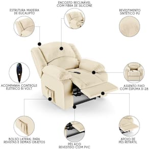 Imagine transformar sua Sala De Estar em um espaço de entretenimento de última geração com a Poltrona do Papai Reclinável Pietra Controle Power Elétrico FH9 Sintético PU Bege, da Mpozenato!