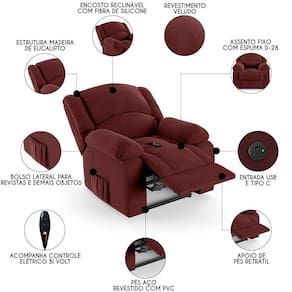 Imagine transformar sua Sala De Estar em um espaço de entretenimento de última geração com a Poltrona do Papai Reclinável Pietra Controle Power Elétrico USB FH9 Veludo Vinho, da Mpozenato!