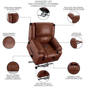 A Poltrona do Papai Reclinável Pietra Elevação Lift Elétrico FH9 PU Marrom Brilho, da Mpozenato é uma peça de mobiliário que redefine o conforto e a acessibilidade na sua Sala De Estar.