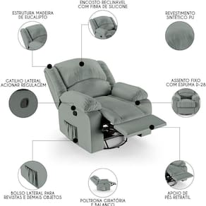 Poltrona Do Papai Reclinável Pietra Glider Giratória Fh9 Pu Cinza - Mpozenato
