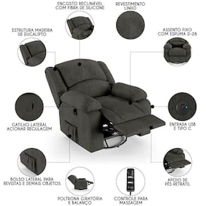 A Poltrona do Papai Reclinável Pietra Glider Giratória Massagem FH9 Linho Grafite, da Mpozenato é a adição perfeita para você que quer transformar a sua Sala De Estar em um espaço de entretenimento comparável a uma sala de cinema privada!