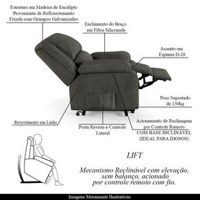 Mecanismo: LIFT reclinável, com elevação e inclinação com controle BIvolt