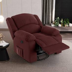 Poltrona Do Papai Reclinável Sala De Cinema Barcelona Glider Manual Giratória Massagem Usb Veludo Vinho - Blush