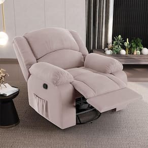 Poltrona Do Papai Reclinável Sala De Cinema Barcelona Glider Manual Giratória Massagem Usb Veludo Rosê G23