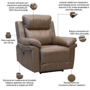 Com design robusto e linhas imponentes, essa peça combina tecnologia e conforto premium em um mecanismo retrátil reclinável automatizado - um simples toque e você encontra a posição perfeita para descansar como um rei. O revestimento em couro oferece resistência digna de um trono, enquanto a espuma de alta densidade garante apoio ergonômico que acolhe sem afundar. Perfeita para assistir aos jogos, ler aquele livro acumulado ou simplesmente fechar os olhos por alguns minutos preciosos, a Imperial é a poltrona de couro que conquista toda a família com seu conforto inteligente e estilo majestoso.