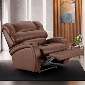 Dimensões do Produto:Largura: 93cmAltura: 95cmProfundidade: 96cmProfundidade Aberto: 169cmAltura do Encosto: 62cmAltura do Assento até o Chão: 46cm Características do Produto:Estrutura: Composta por Madeira Maciça de Eucalipto;Assento: com Molas e Espuma D-28;Encosto: Reclinável com Enchimento em Fibra de Silicone;Mecanismo: Controle Elétrico Bi Volt;Tipo de Base: Fixa;Material dos Pés: Aço Revestido com Plástico;Revestimento: PU;Peso Suportado: 110kg;Conteúdo da Embalagem: 1 Poltrona;Necessita de Montagem: Não;Instruções/Cuidado: Recomendado somente limpeza com pano umedecido;