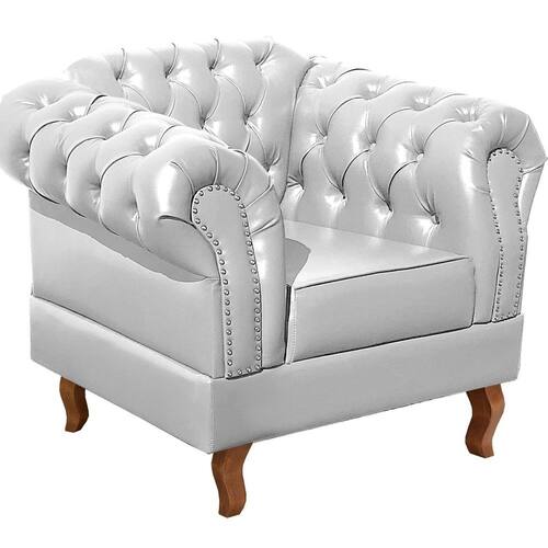 Não rasgue a embalagem antes de ter certeza que ficará com tudo. Acompanha Almofadas extras: Não Acompanha Puff: Não Almofada do assento: Removível Almofada do encosto: Não Possui Altura do assento até o chão: 41 cm Altura do Encosto: 82 cm Ambiente Principal: Sala de Estar Complexidade da Montagem: Baixa: pode ser montado por uma pessoa sozinha Cor: Branco Cor do Produto: Branco Design Assinado: Não Enchimento do Assento: Espuma D-26 Enchimento do Braço: Espuma D-26 Encosto para a Cabeça: Não Estampado: Não Extensível: Não Firmeza do Assento: Médio Informações Complementares: 120Kg por acento Itens Inclusos: 1 Poltrona Dom Pedro (incluindo seus respectivos pés apenas pra enroscar) Linha ou Coleção: Chesterfield Material do Braço: Madeira Eucalipto Material dos Pés: Madeira Eucalípto Modelo de Poltrona: Fixo Necessita Montagem: Sim Origem do Produto: Nacional Peso: 35 kg Possui Percintas Elásticas: Sim Possui Pés: 04 Possui Rodízio: Não Recomendações de Uso, Manutenção e Limpeza: Limpeza e cuidados: pode ser utilizado aspirador de pó, escova com cerdas macias ou limpeza a seco. Não utilizar produtos químicos, abrasivos ou limpeza a vapor. Evitar exposição prolongada ao sol. Sistema de Montagem: Enroscar os Pés Suporta Até (kg): 120 kg Tecido Predominante: Couro Sintético Tipo de Assento: Fixo Tipo de Encosto: Fixo Tipo de Espuma do Assento: Espuma Convencional Tipo de Poltrona: Decorativa